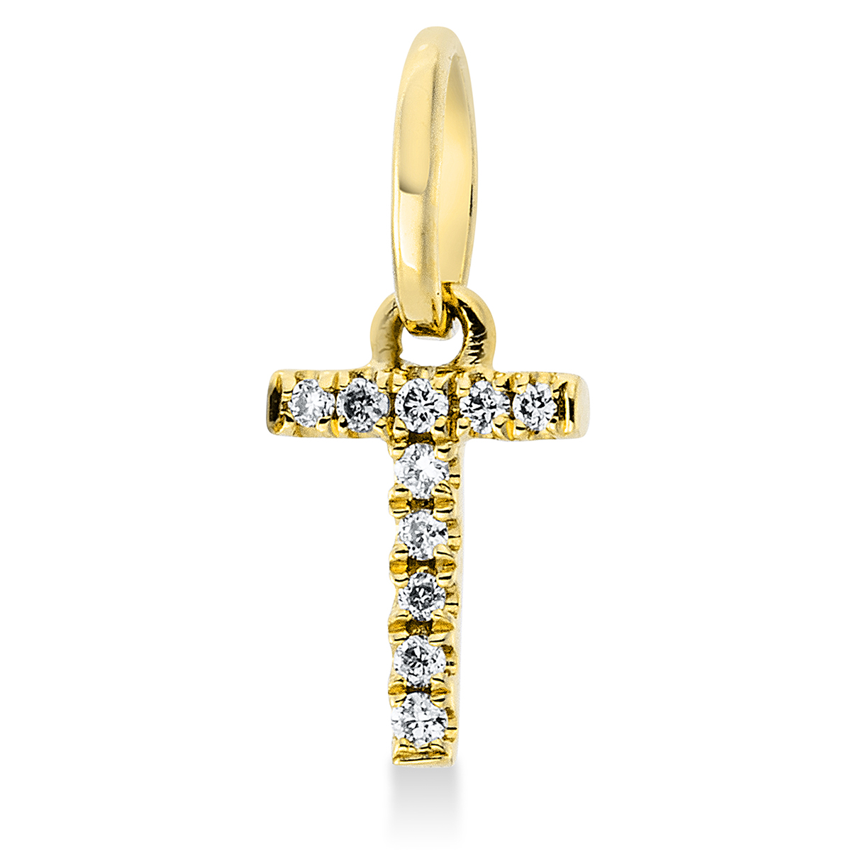 Anhänger 18 kt GG «T», mit Öse, 10 Brillanten 0,03 ct, TW-si, H:11,2 mm, B:4,8 mm, S:1,2 mm