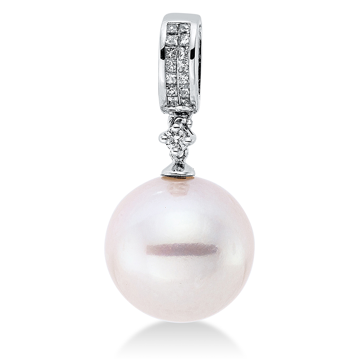 Anhänger 18 kt WG, 14 Princ. 0,10 ct, W-si, 1 Brill. 0,02 ct, W-si, 1 SS weiß 13 mm, H:23,5 mm, B:2,9 mm
