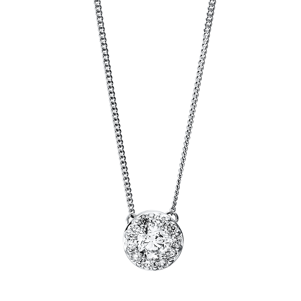 Collier 18 kt WG, 10 Brillanten 0,15 ct, TW-si, 1 Brill. 0,25 ct, TW-si, L:43,0 cm, Ø:6,8 mm