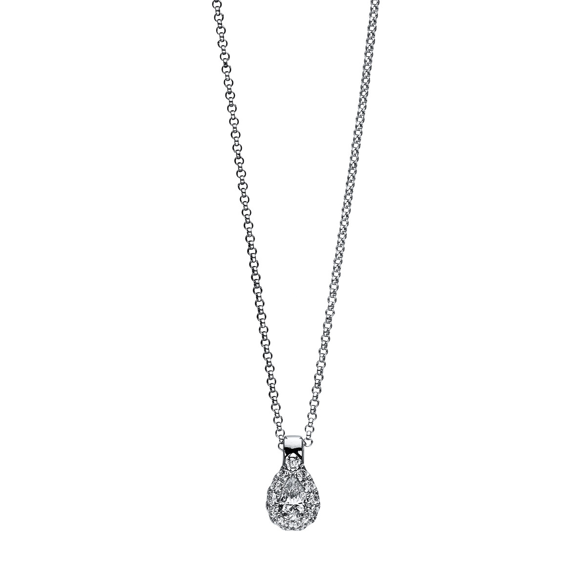 Collier 18 kt WG, 1 Tropfen 0,16 ct, TW-si, 12 Brillanten 0,10 ct, TW-si, H:9,8 mm, B:5,6 mm, L:46,0 cm