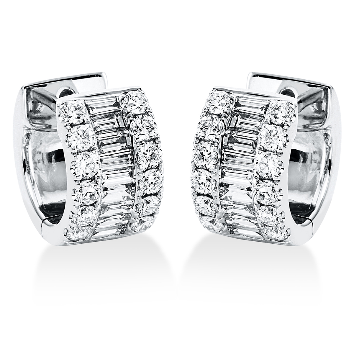 Creolen 18 kt WG, 17 Baguette 0,41 ct, TW-si, 24 Brillanten 0,42 ct, TW-si