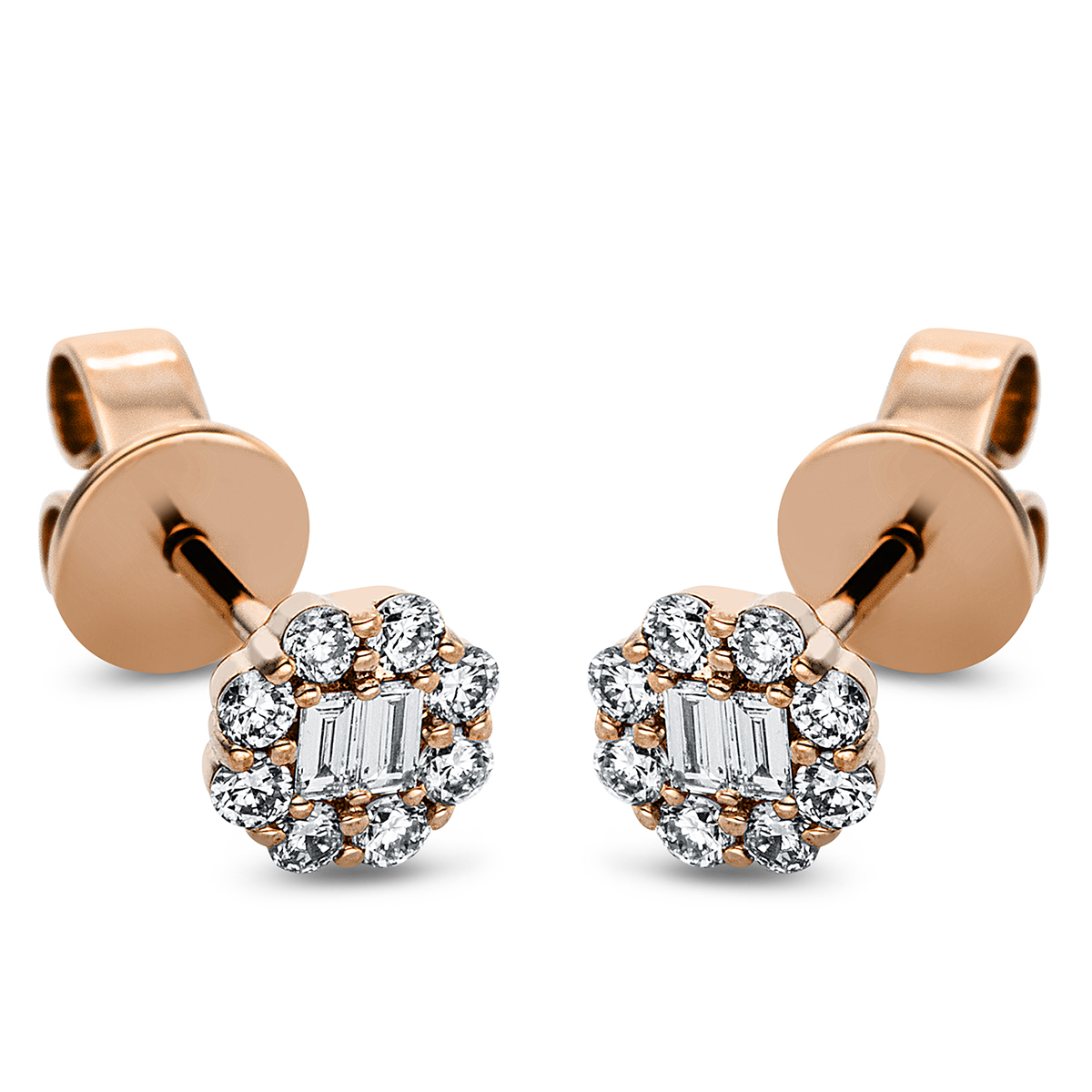 Ohrstecker 18 kt RG, 4 Baguette 0,05 ct, TW-si, 16 Brillanten 0,21 ct, TW-si