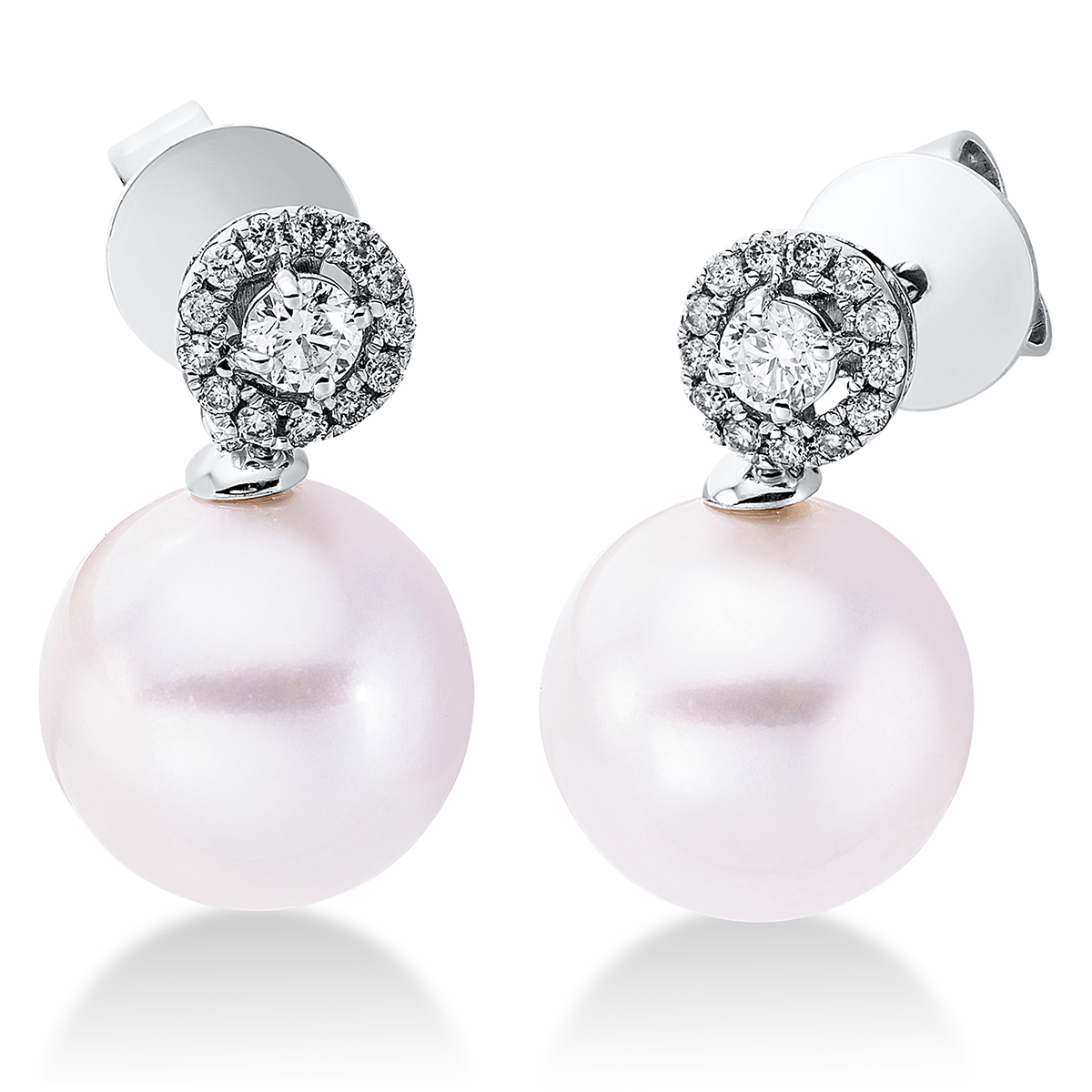 Ohrstecker 18 kt WG, 2 Brillanten 0,17 ct, W-si, 26 Brillanten 0,13 ct, W-si, 2 SW weiß 10,5 mm
