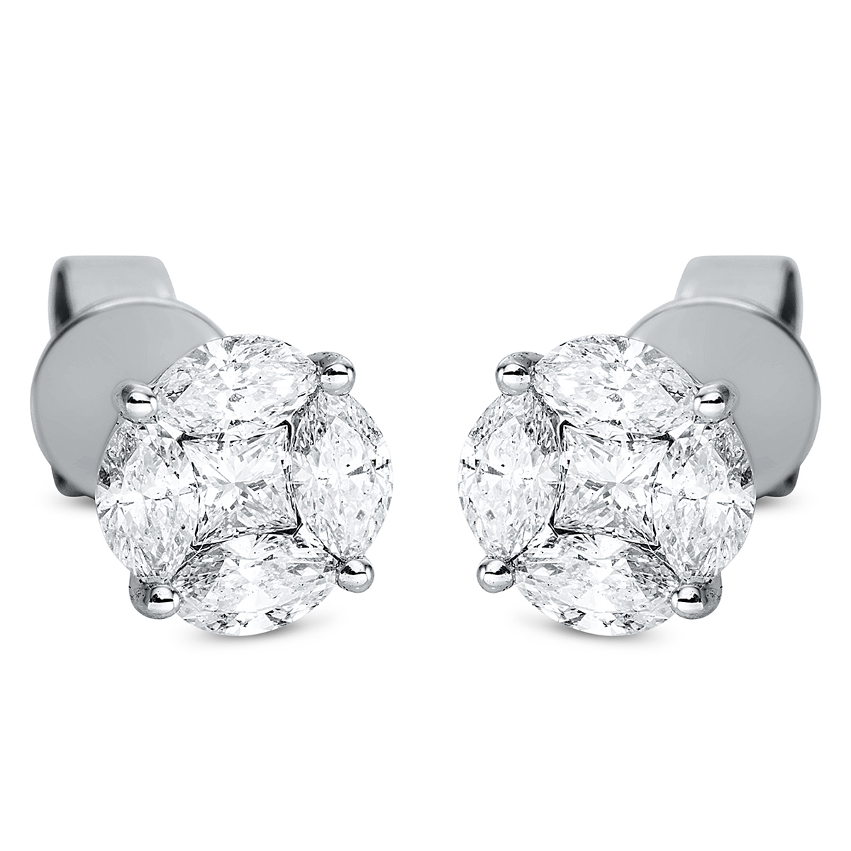 Ohrstecker 18 kt WG, 2 Princ. 0,17 ct, TW-vsi/si, 8 Navette 0,66 ct, TW-vsi/si