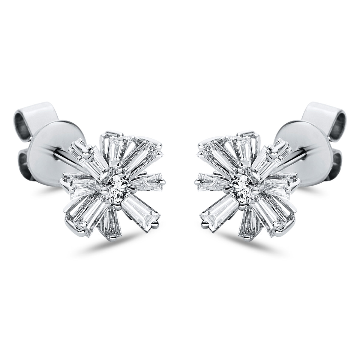 Ohrstecker 18 kt WG, 16 Trapeze 0,62 ct, TW-si, 2 Brillanten 0,10 ct, TW-si