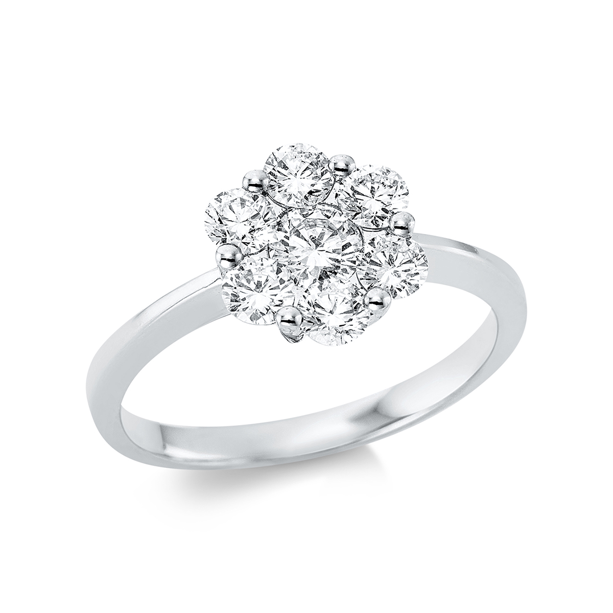 Ring 18 kt WG, 1 Brill. 0,24 ct, TW-si, 6 Brillanten 0,69 ct, TW-si, Weite:54