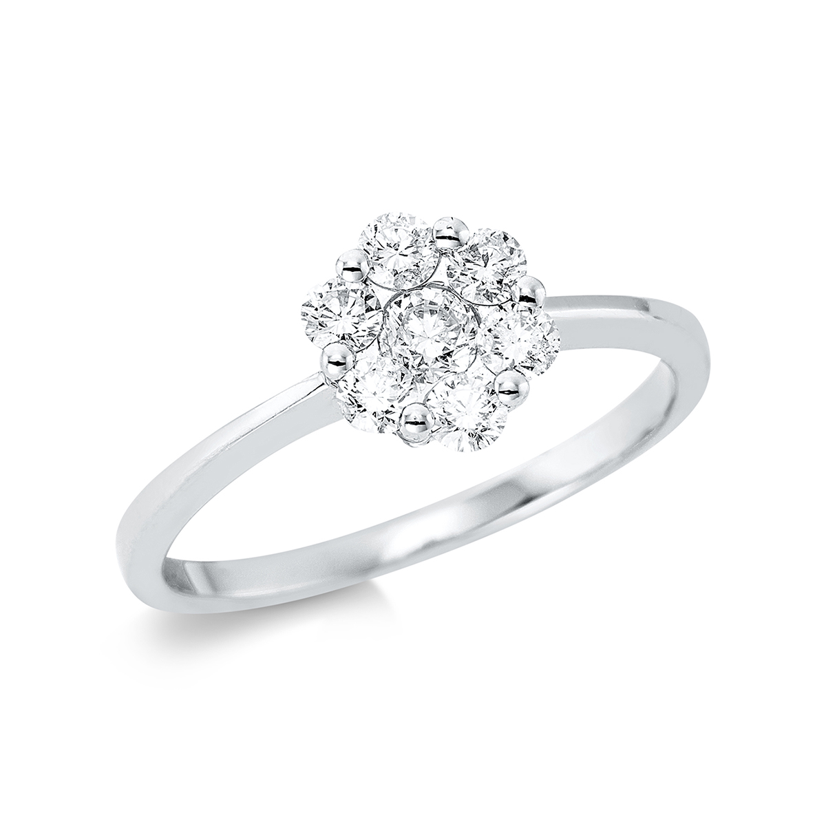 Ring 18 kt WG, 1 Brill. 0,13 ct, TW-si, 6 Brillanten 0,37 ct, TW-si, Weite:54
