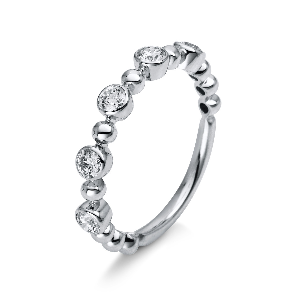 Ring 18 kt WG, 5 Brillanten 0,37 ct, TW-si, B:3,3 mm, Weite:54